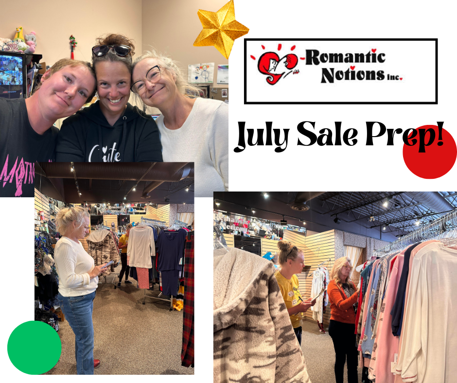 Every year, Romantic Notions, does a store wide inventory clear out during the month of July. We slash prices on most things from corner to corner, and our clients flock in to get great garments at great prices.